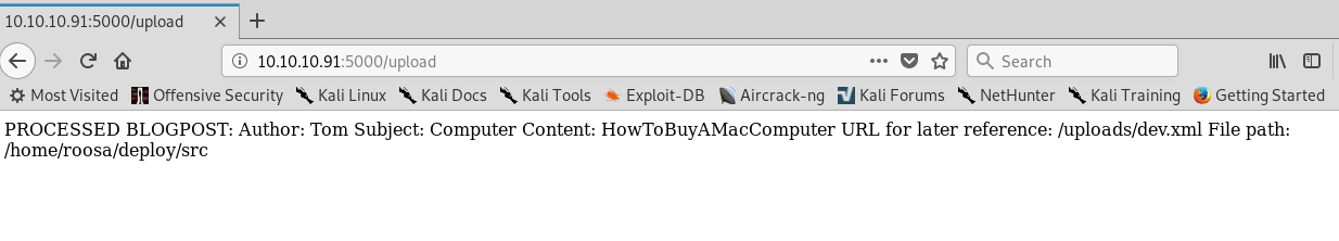 Next, we explore the web service hosted on http://10.10.10.91:5000/.