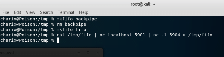 cat /tmp/fifo | nc localhost 5901 | nc -l 5904 > /tmp/fifo