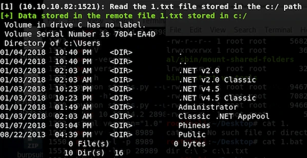 --putFile "c:/" 1.bat /root/Desktop/1.bat --sysdba